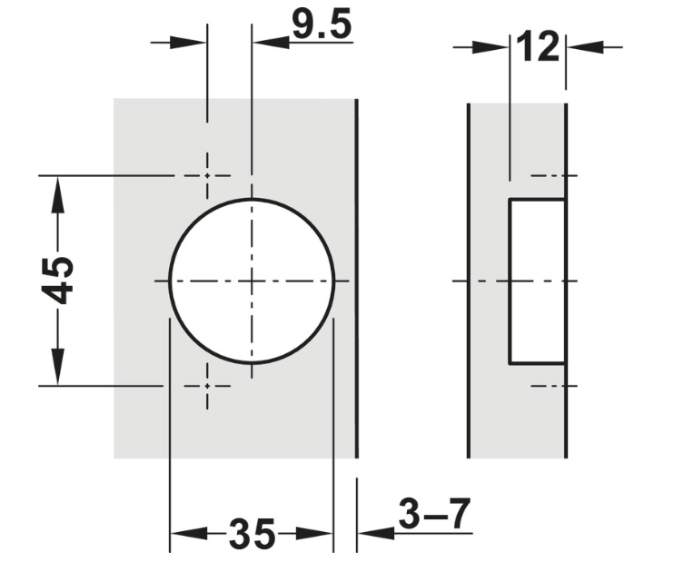 pričvrščivanje vijcima, slika bušenja 45/9,5, niklano