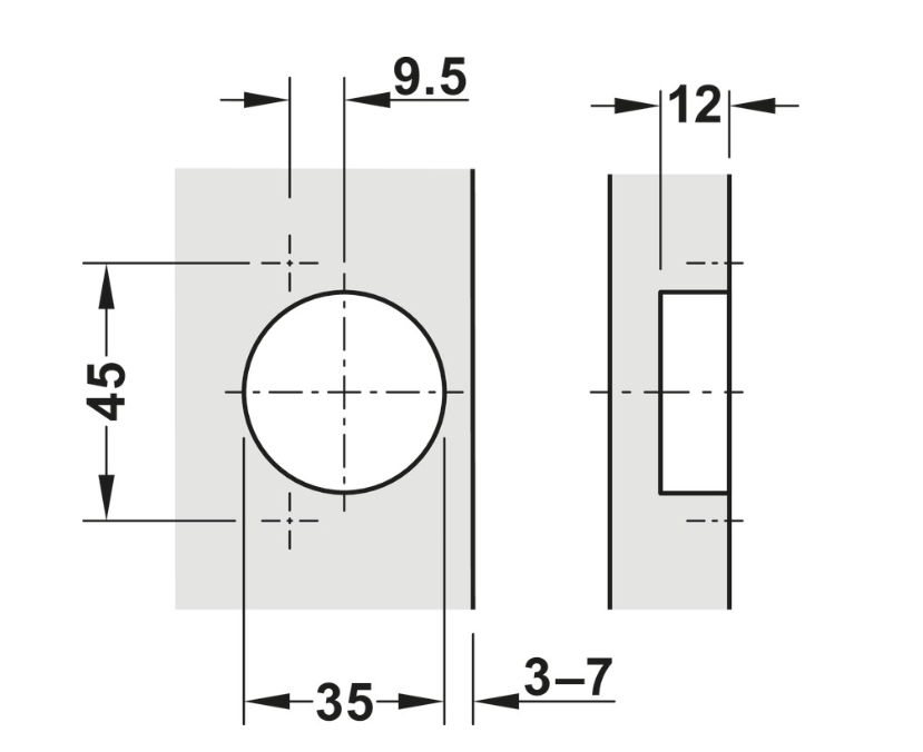 pričvrščivanje vijcima, slika bušenja 45/9,5, niklano