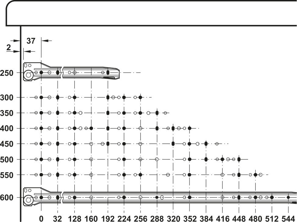 Vodilica skrivena Matrix UM A30 za deb. do 19 mm, puna izvl. sa ublaž. 550 mm